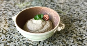 Place all ingredients into food processor and blend until smooth and thick. Chill in refrigerator for 30 minutes to “set.” Garnish with cocoa nibs and fresh sliced strawberries. Serve in small portions as this is a very rich dessert.